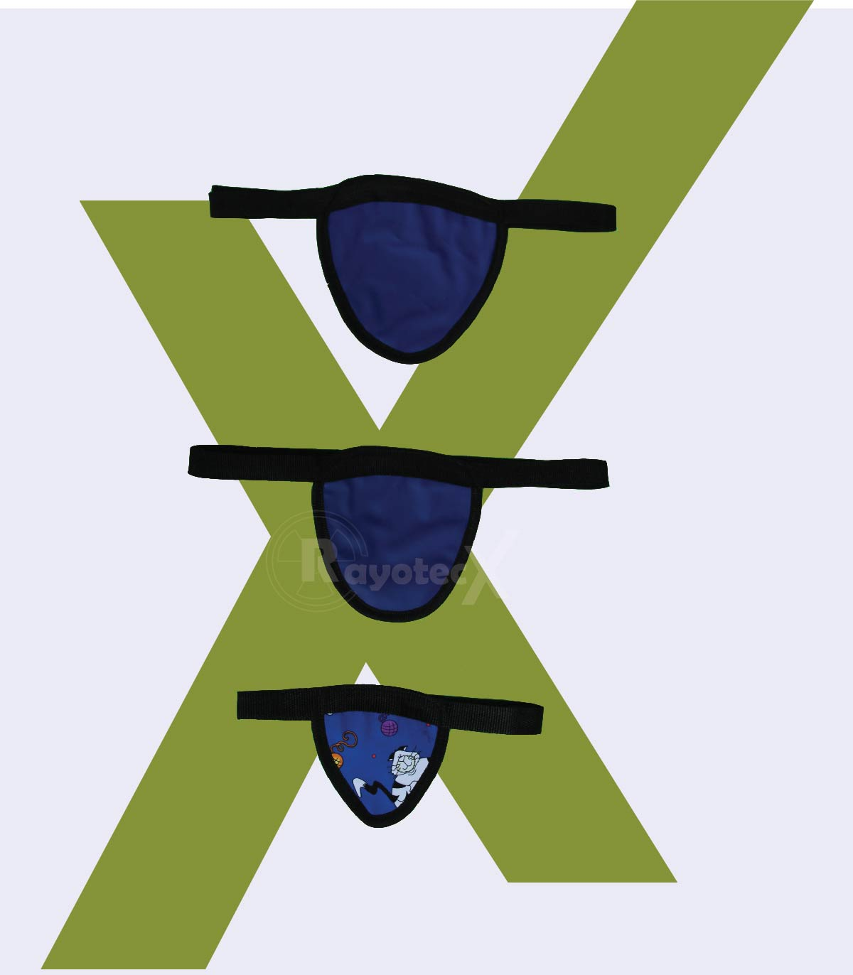 Juego protector de gónadas, tres piezas de diferente tamaño para niño, joven y adulto, de 0.5 mm de equivalencia en plomo, Forrado en tela anti fluidos de alta calidad.